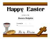 A church or Sunday school class can hand out this Easter certificate commemorating the holiday. It is decorated with a cross, palm fronds, and other iconic images.