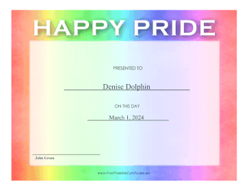 This Happy Pride certificate can be presented at Pride Month events in June, or awarded to a business or other organization that is supportive of the LGBTQ+ community.