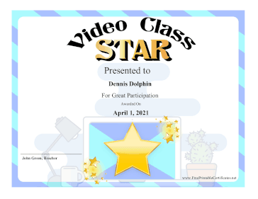 This printable online school video class star certificate can be awarded to students who pay attention and have positive attitudes on video calls during distance learning.