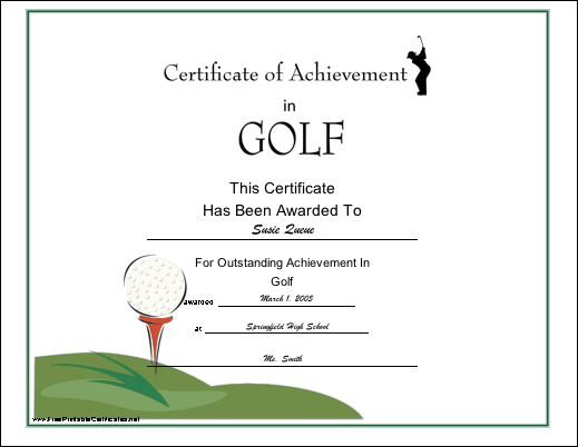 Any golfer will love this certificate of achievement honoring excellence on the golf course. Features a ball and tee in the foreground and duffer in the background.